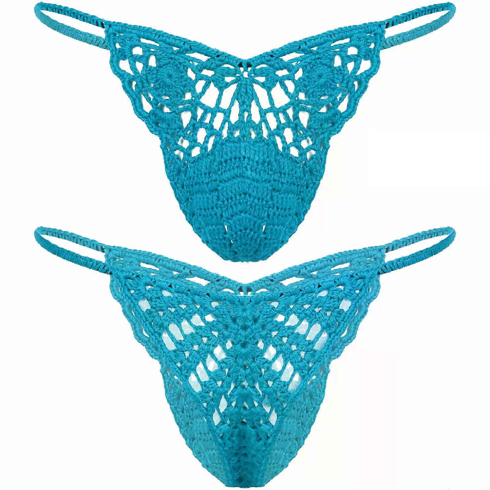 Mens Crocheted G-String Hollow Underwear T-Back Briefs Thong Underpants Swimwear