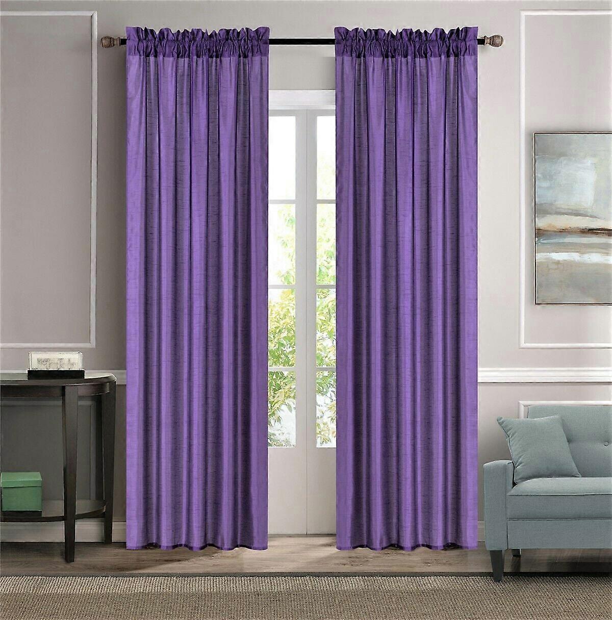 2 Panel Faux Silk Solid Curtains 108" W x 84" L, Rod Pocket, Semi Sheer, Non-Blackout, for Bedroom or Patio Door, MR2 Lilac