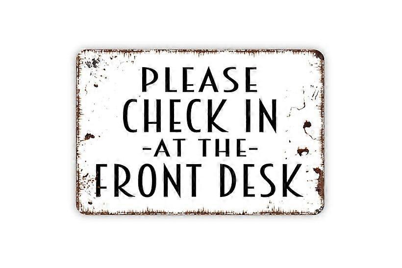 (Aluminum metal) Please Check In At The Front Desk Sign Metal Sign Farmhouse Contemporary Modern Wall Metal Sign Size: 16 x 12 Inch