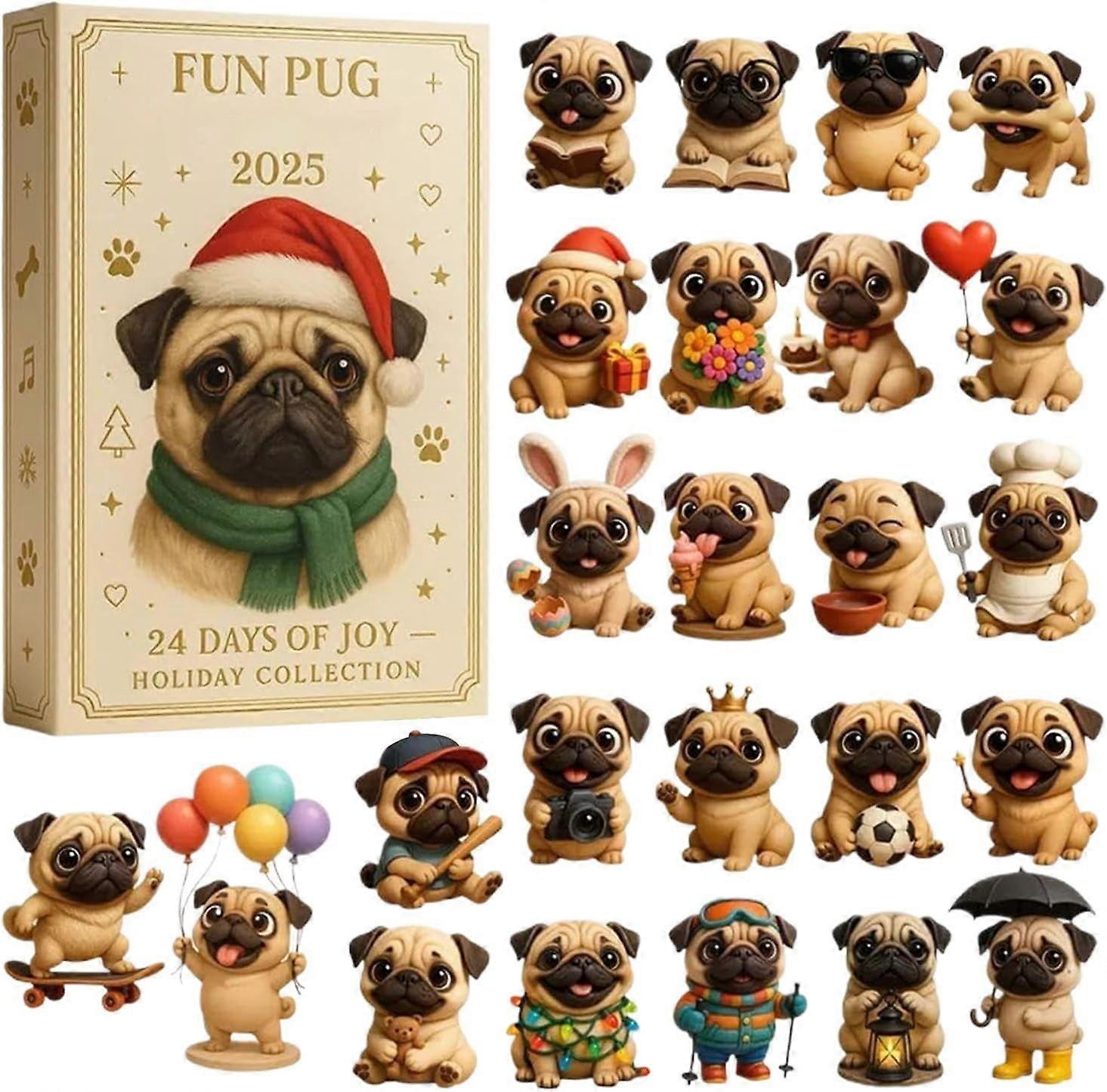 Pug Advent Calendar 2025, 24-Piece Puppy-Themed Countdown with Acrylic Dog Pendant Ornaments, Cute Pet Lover Gift – Compatible with Pug Enthusiasts