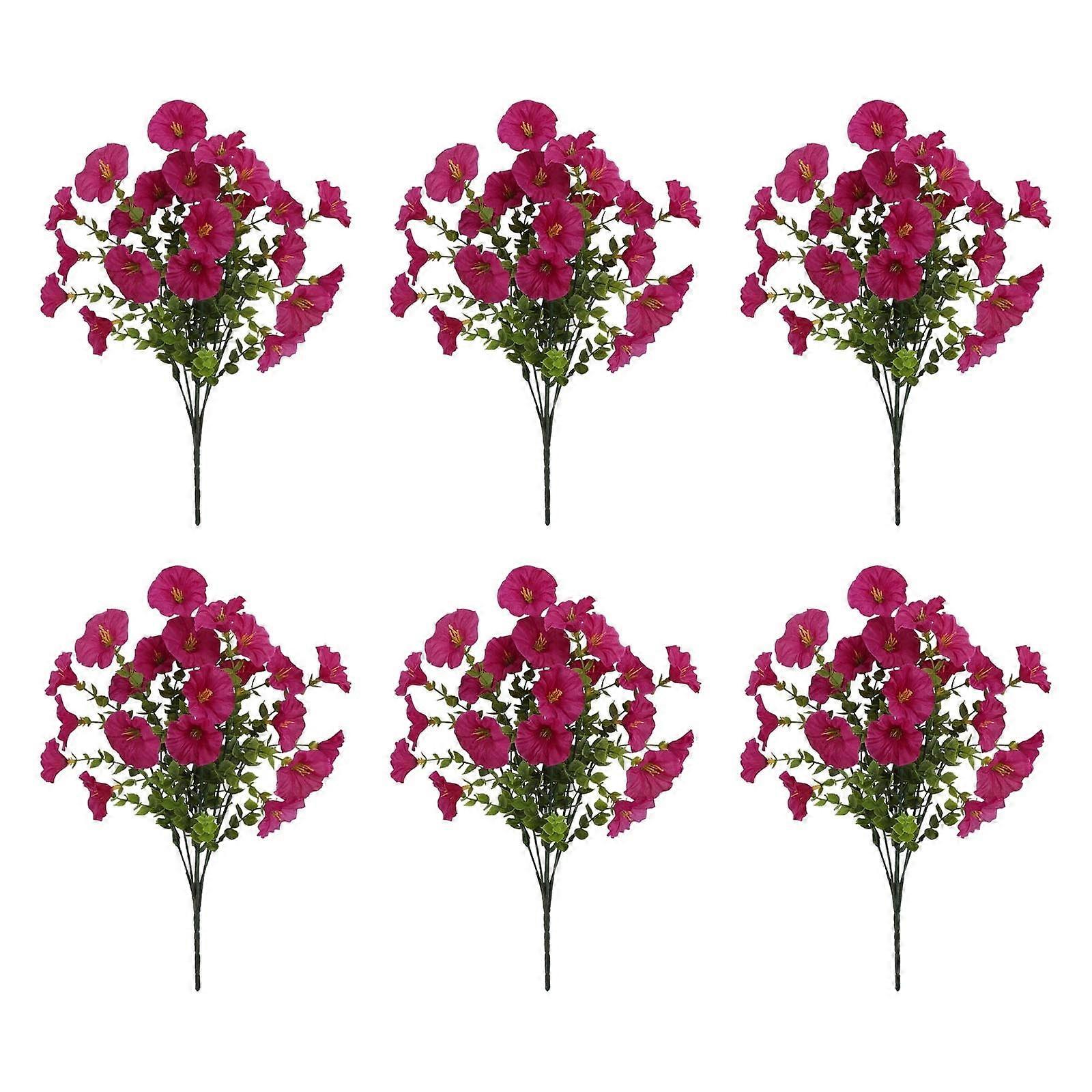 Summercome 6 PCS Artificial Outdoor Flowers, Faux Silk Morning Glory, UV Resistant for Porch, Patio, Balcony, Window Box, Garden Decor (Hot Pink)