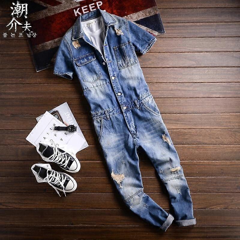 Men Retro Denim Loose Overall Jumpsuit Jeans Coat Suspenders Romper Cowboy Pants