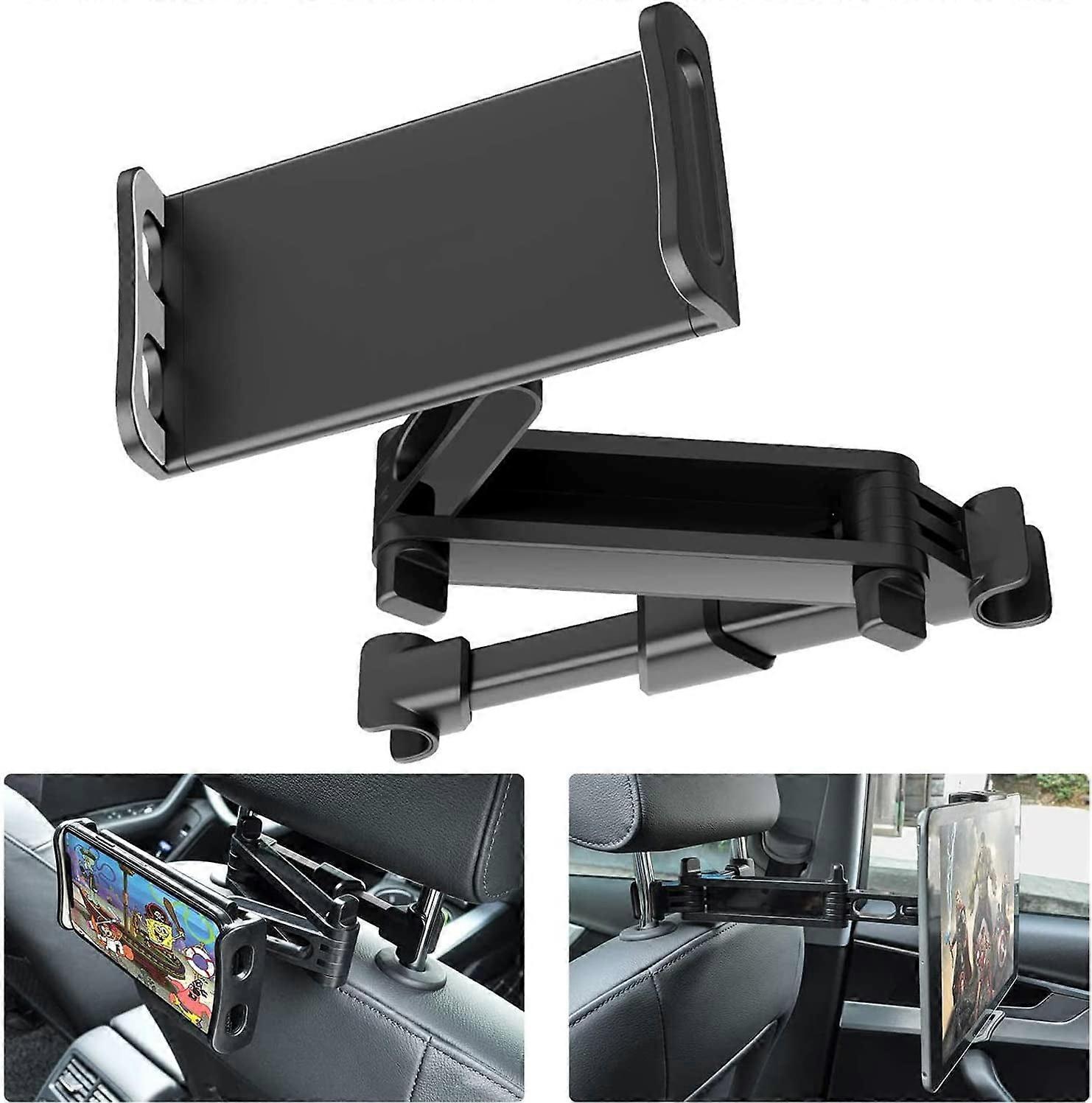 Wide Compatibility: This Car Headrest Tablet Mount fits virtually any Tablet or Phone, from 5" to 11", compatible with iPad Air Mini, compatible with iPad Pro 9.7 10.5 11, compatible with iPhone, compatible with Samsung Galaxy Tab or Phone, compatible with Microsoft Surfaceicrosoft Surface Go/ 2, Kindle fire HD, Switch and more Tablet & Phone. Cradle width is:4.7-7.9in/ 12-20cm 360° Swivel: With a built-in swivel ball, this mount for car/ suv/ pickup backseat supports free multi-angle rotation, switching landscape/portrait mode instantly. Secure placement: With Non-slip silicone mats on grooves. Neck Saver: Freely Adjustable, with a stepless adjustable long arm, this mount can be easily stretched from 1.9in/ 5cm to 8.7in/ 22cm long distance extend, offering more near-point to touch or further distance to protect our kids eyes, It saves his/her neck since our child doesn't have to strain their head/neck to look down. Easy to Install: This Tablet holder for car suits the headrest rods between 5.0in/ 12.8cm to 5.7in/ 14.5cm in width. No tools required during installation, adjusting and operation. Easy to make our kids happy and relax, offer real safe & funny driving with our family/friends. Perfect Life Saver for Long Road Trips: Ideal for rear passengers watching favorite shows/videos, listening music, reading e-books, playing games, to have more entertainment never before, during road trips. It easily turns to the ideal position. Our baby doesn’t have to hold the phone/compatible with ipad/tablet with his/ her neck always bent downward to view. Say goodbye to troublesome problem on our baby's neck line.