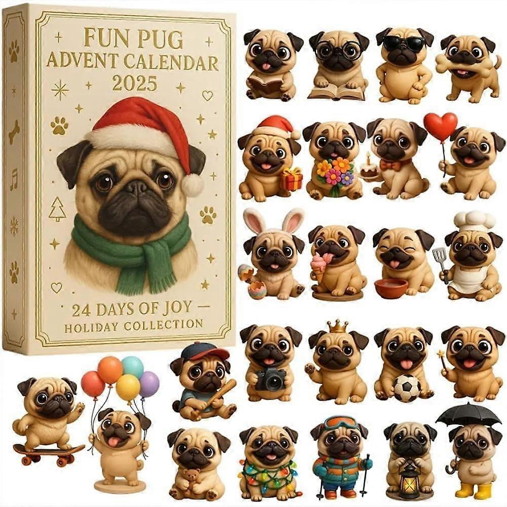 Pug Advent Calendar 2025, 24 Days Christmas Countdown with Cute Pug Dog Ornaments, compatible with dog lovers, Holiday Gift & Tree Decor
