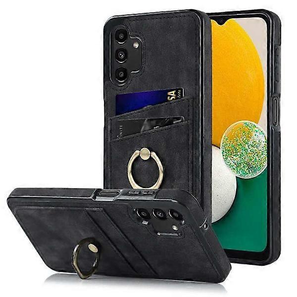 Slim, elegant and smooth mobile phone case with a retro look and ring holder. The integrated card slots on the back let you carry the most essential cards such as driver's license and credit cards without having to carry around a thick wallet. On the back there is also a ring holder that is 360 degrees rotatable. This means that you can hold your phone both for a longer time and more comfortably, the ring can also function as a stand for comfortable watching movies etc. The case also has a raised frame which prevents the screen from coming into contact with a flat surface if the phone is placed with the screen down. Features: - Slim Design - Shock-absorbing - Height Frame Protects Display and Camera Housing - 2 Practical Card Slots - Protects against scratches, dirt and dust - Non-slip coating - 360 Degree Rotatable Ring Holder (Stand) - Material: PU Leather (Vegan Leather) - Fits: compatible with Samsung A13 5G / A04s