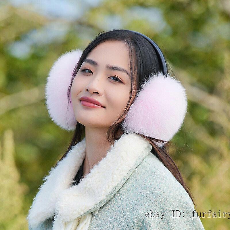 Large Real Fox Fur Earmuffs Winter Earflap Sheepskin Leather adjustable headband