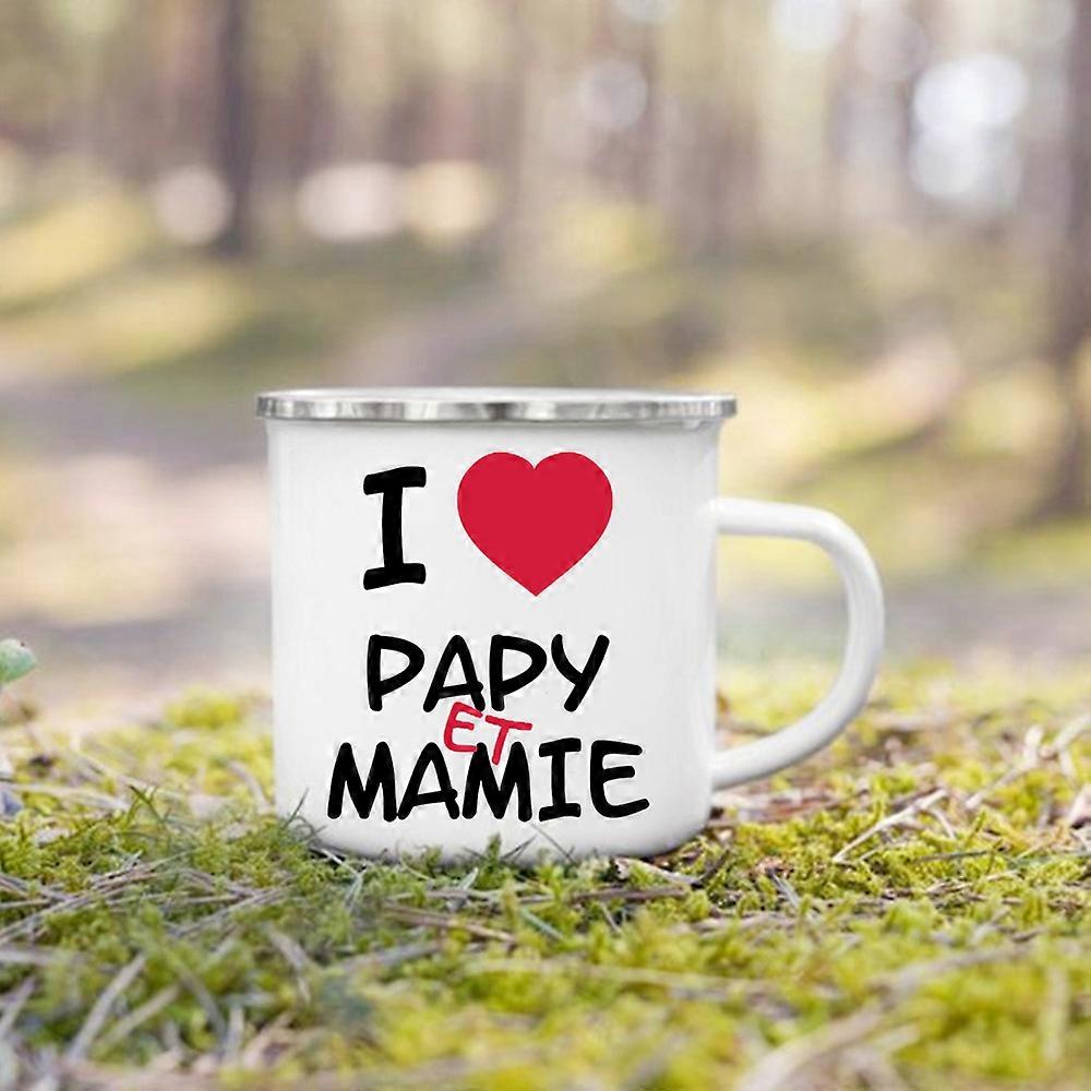 Super Papy Mamie Print Enamel Mug Creative Coffee Cups Drinks Water Milk Cup Enamel Mug Home Drinkware Gifts for Grandma Grandpa
