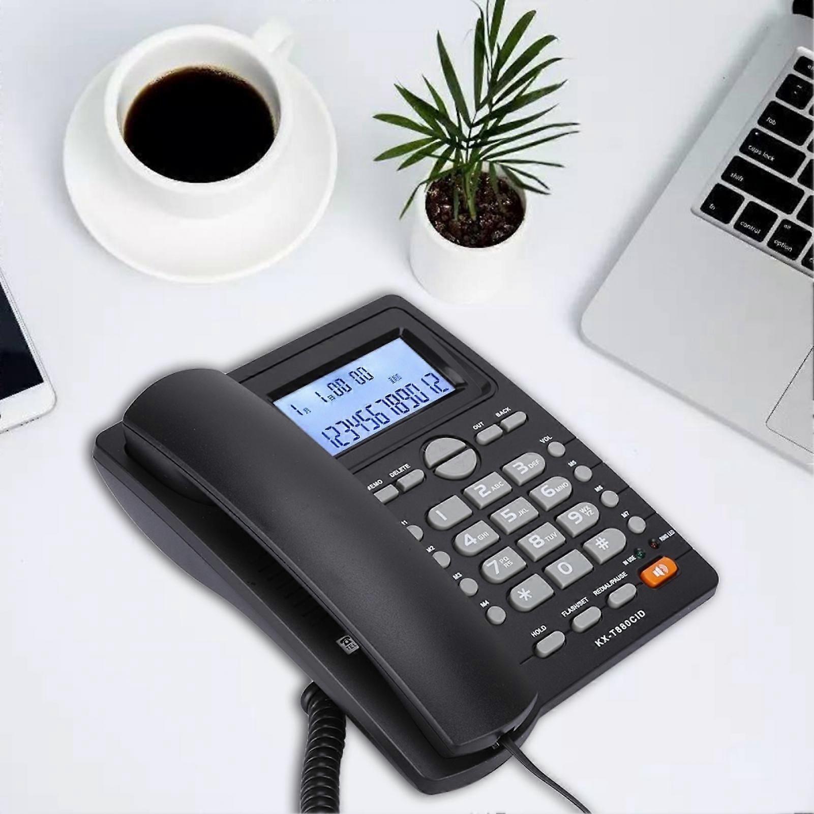 Large Buttons Corded Phone with Speakerphone Clear Sound Answering Machine for Calculator Home Telephone Specification: Features: 1. LCD Display - LCD screen displays real-time date, call time record, incoming call number, etc. 2. Clear Sound - Noise cancelling function helps keep noise outside to let you have clear communications. 3. Extension Set - Comes with dual port design. Supports extension set. 4. Large Buttons - Adopting large buttons to let you see every number and letter clearly. 5. Made of ABS, durable to use. 6. It's not just a telephone, it's also a calculator. Specification: Material: ABS Size: about 22x22.5x7cm/8.66x8.86x2.76in Color: White, Black(optional) Model: KX-880CID Main function: with blue screen 8 groups of quick storage keys, caller ID, hands-free calling Package List: 1 x Corded Phone with Speakerphone 1 x Phone Cover 1 x Phone Cable 1 x Dual-port Cable Extension Set - Comes with port design. Supports extension set. Clear Sound - Noise cancelling function helps keep noise outside to let you have clear communications. LCD Display - LCD screen displays real-time date, call time record, incoming call number, etc. Large Buttons - Adopting large buttons to let you see every number and letter clearly. It's not just a telephone, it's also a calculator.