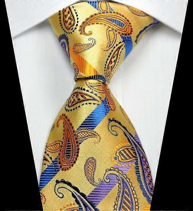 Hot! Paisleys Stripe Gold Purple Blue JACQUARD WOVEN 100% Silk Men's Tie Necktie