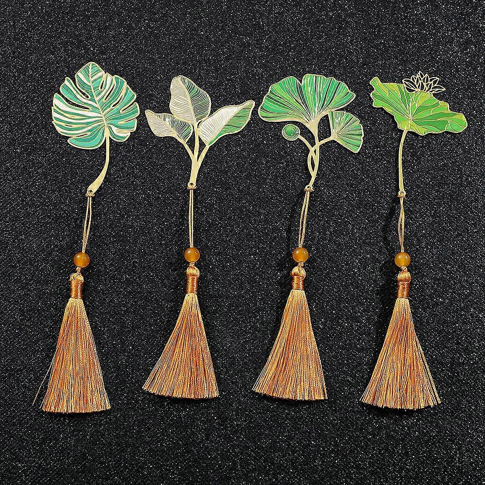 Creative Chinese Style Botanical Leaf Vein Bookmark - Metal Bookmark with Tassel Leaves of the Seasons, Literary Gifts for Teach
