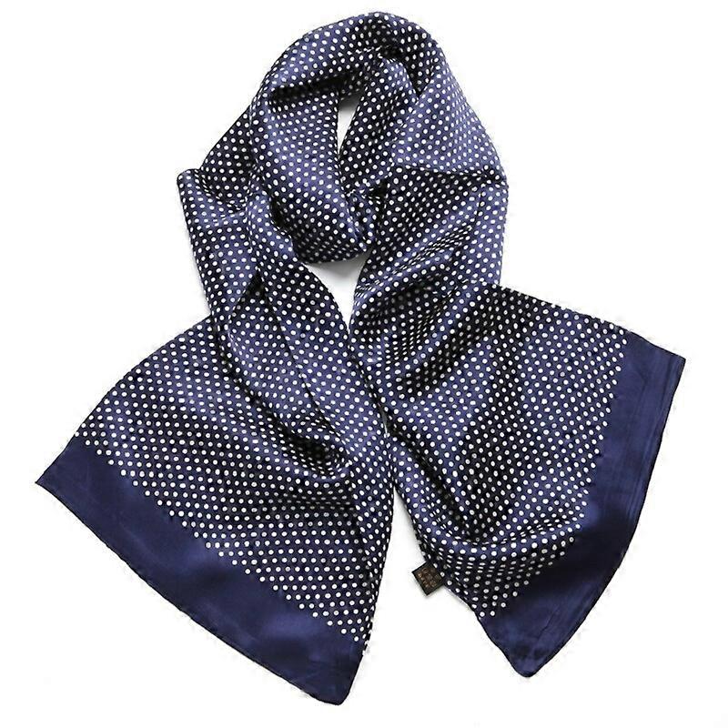 Mens 100 Silk Scarf Double Layer Long Neckerchief Blue Polka Dot Design