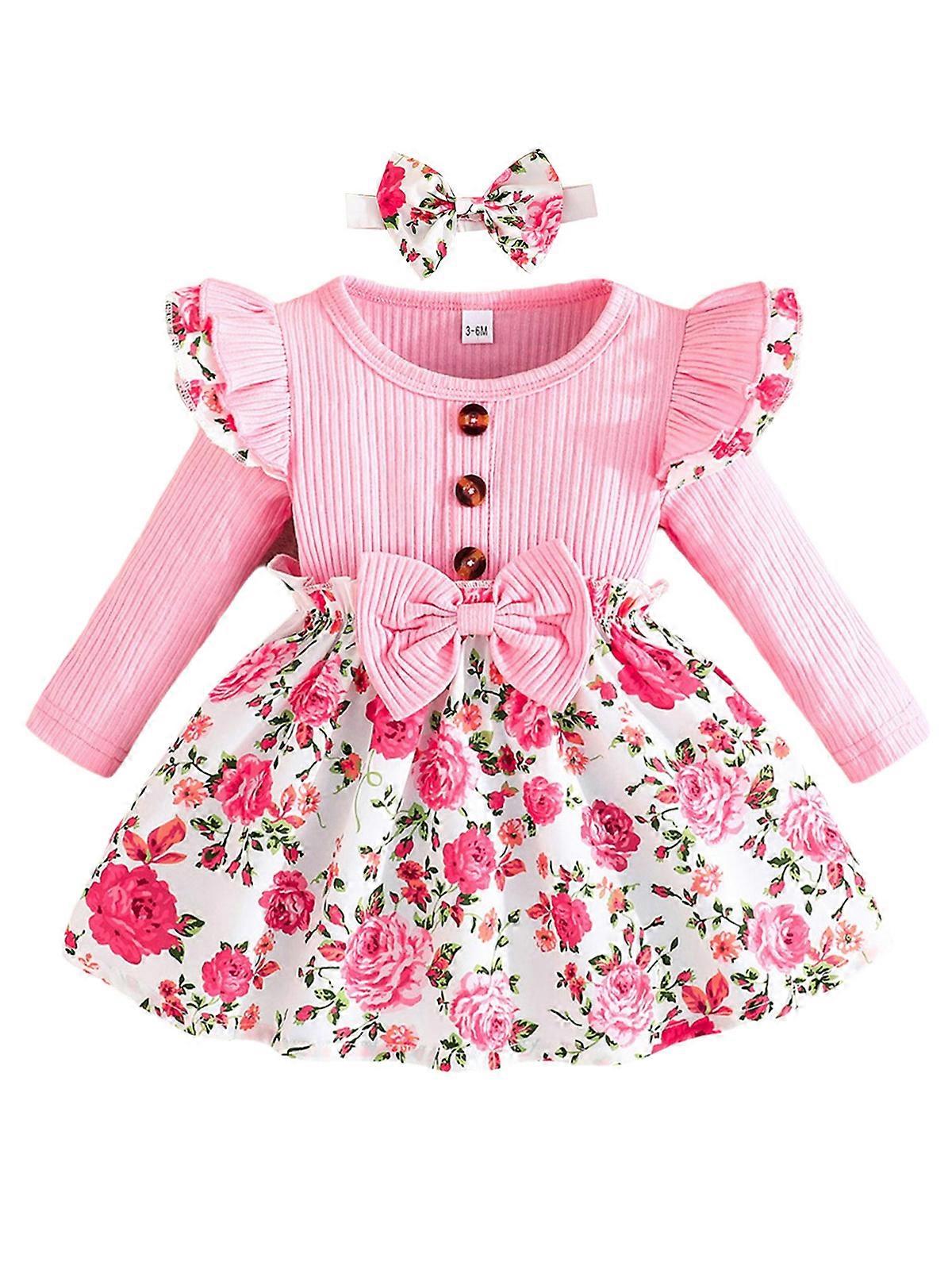 Infant Toddler Baby Girls Set Long Sleeve Tiered Flutter Shoulder Floral Printed