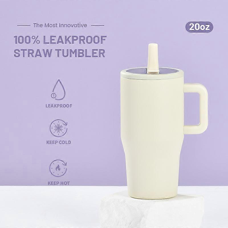 New Portable 20oz Double-layer Thermos Cup Ice Sterling Cup Leak-proof Foldable Straw Cover Direct Drinking Port
