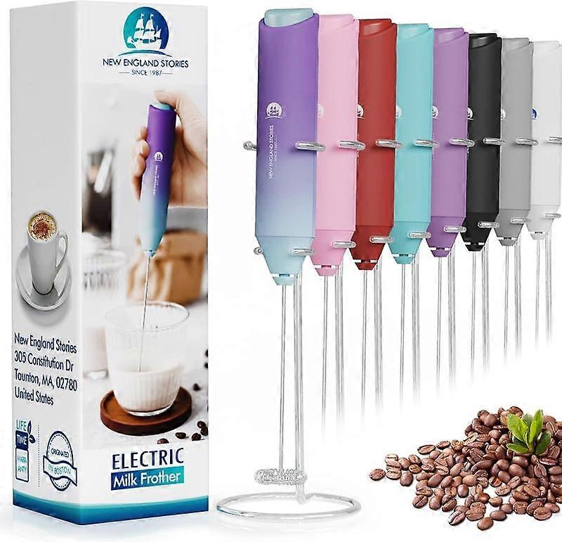 New England Stories Powerful Handheld Milk Frother Wand Stainless Steel Whisk Battery Operated for Coffee Lattes Cappuccinos & Matcha