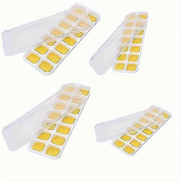 4pcs Silicone Ice Cube Trays with Lid, 14-Cube, Easy Release, LFGB & BPA-Free, Compatible with Cocktail - Yellow