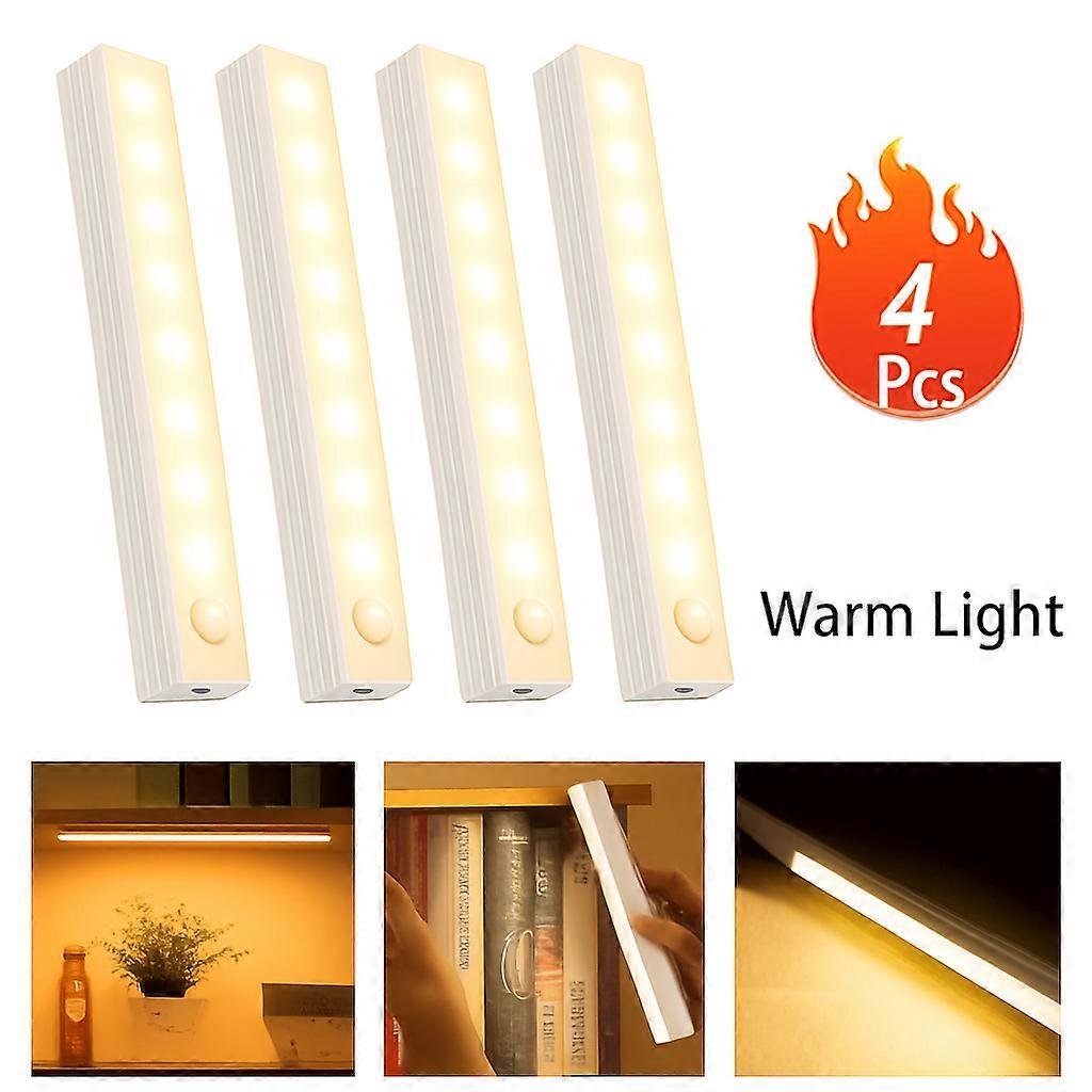 LED Motion Sensor 4pcs Cabinet Lights Wireless Rechargeable Ideal for Closet, Kitchen, Wardrobe, Stairs,Corridor Night Lights