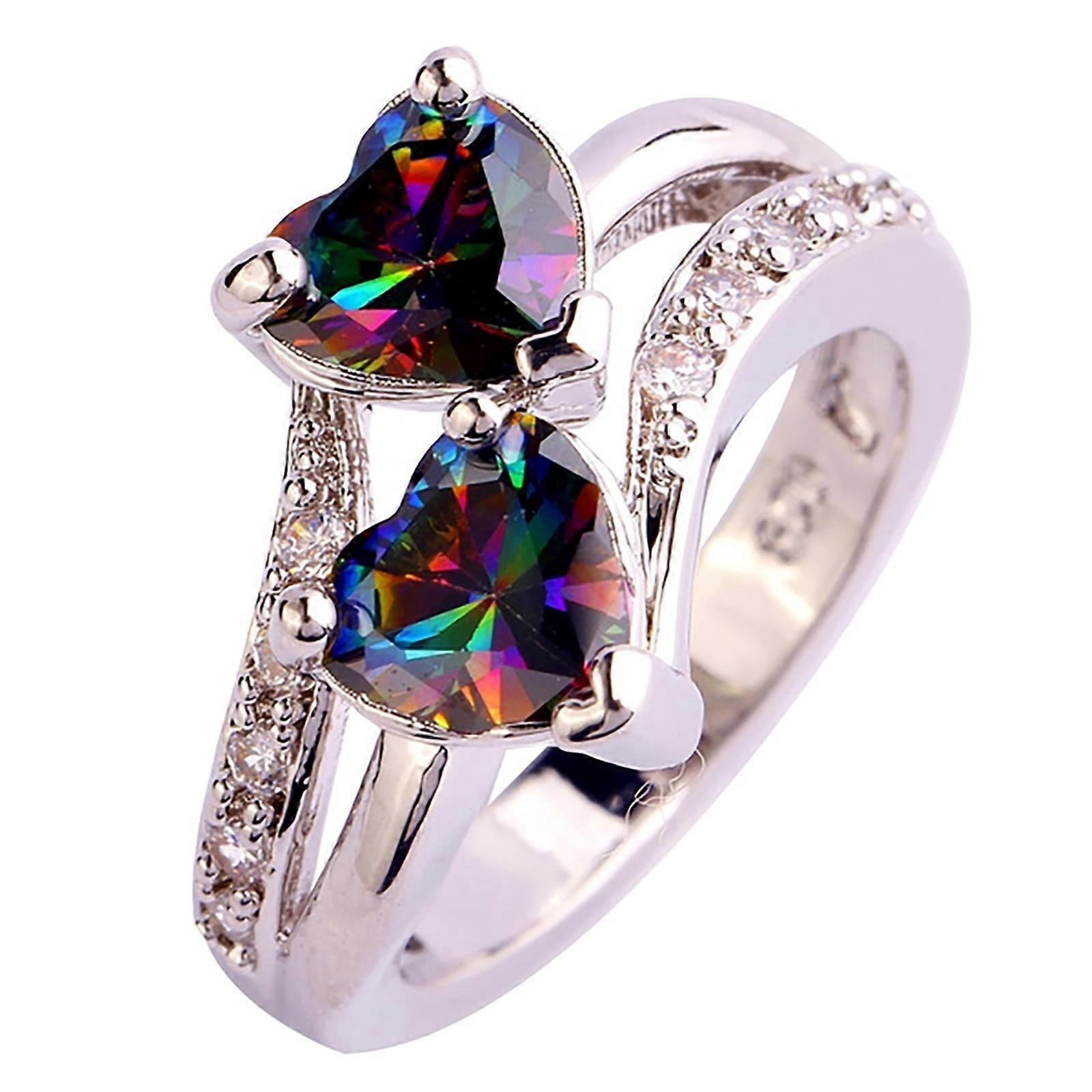 Bidobibo Multi-Stone Heart Round Multicolor Rings, 7"