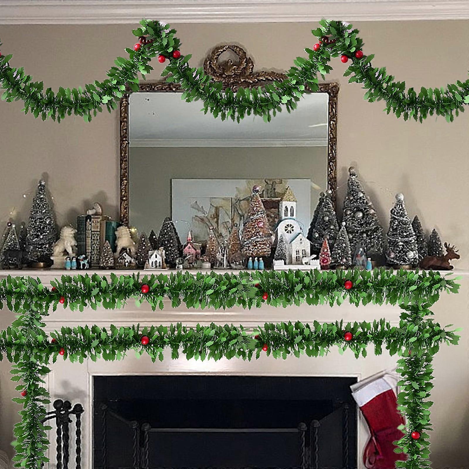 BGZLEU 20 FT Christmas Garland with Holly Leaves & Red Berries, Artificial Greenery for Xmas Fireplace, Mantel, Table Decor
