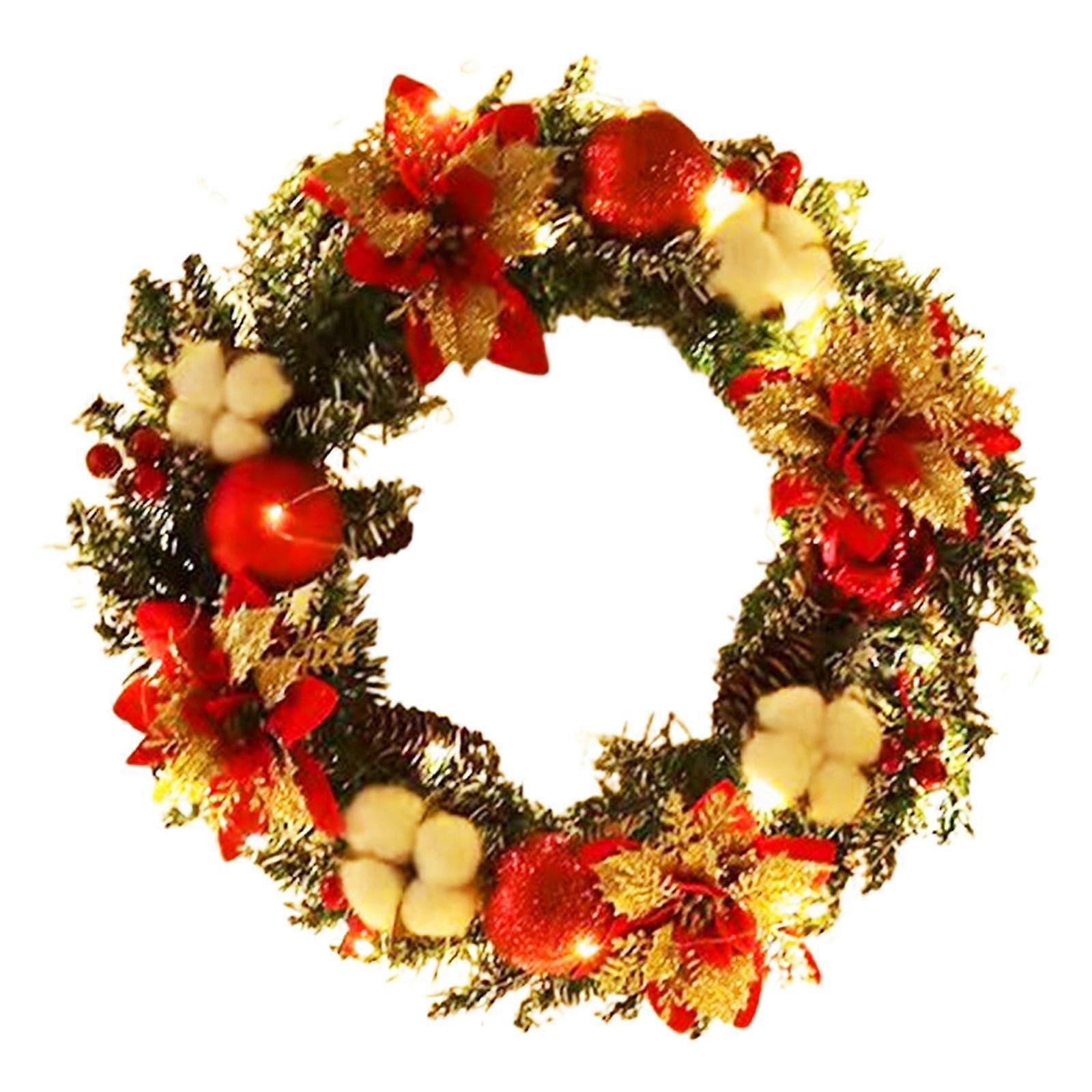 LED Christmas Wreath with Red Gold Ornaments, Artificial Flower Fake Decorative Wreath for Indoor Outdoor Front Door Holiday Decor