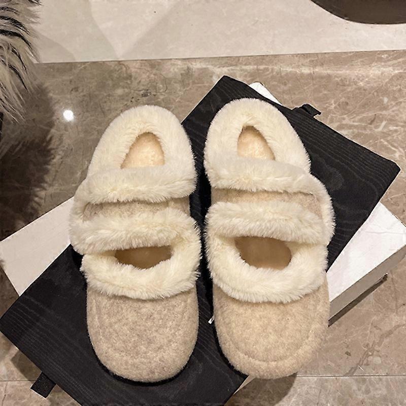 Women's Retro Warm Shallow Mouth Hairy Casual Slippers 2025 Winter Soft Soled Comfortable Fashion Versatile Plush Cotton Flats