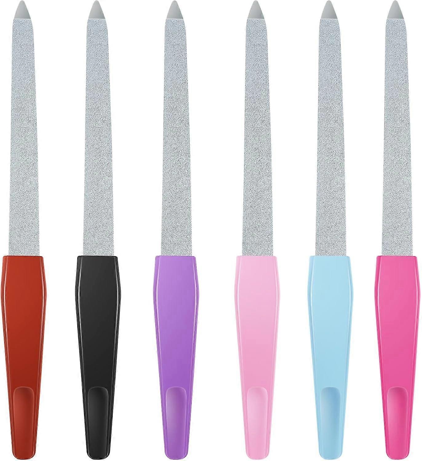 Metal Nail File Set - 6pcs Anti-Slip Handle Sword Shape Nail Files - Premium Metal Nail Files for Natural Nails, Random Color