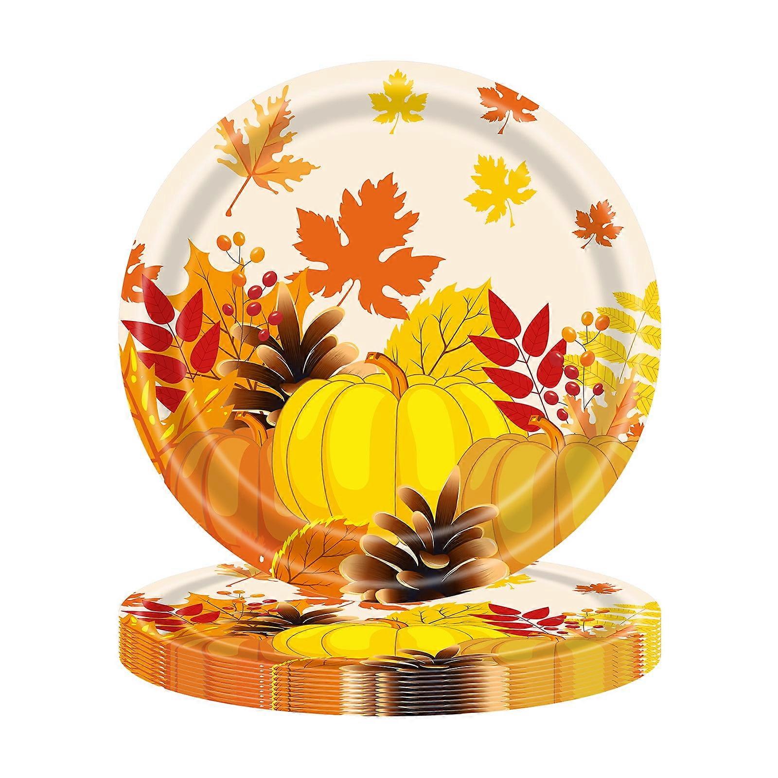 Yhmxh 20PCS Thanksgiving Paper Plates, Fall Harvest Pumpkin Maple Leaf Print, Disposable Dinnerware for Party, Compatible with Autumn Decor