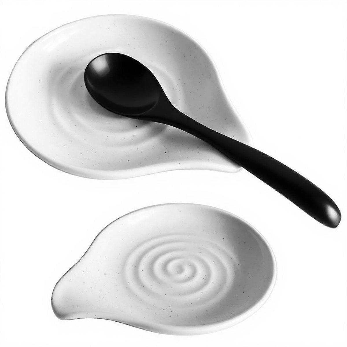 Spoon Rest Ceramic Spoon Holder for Stove Top Heat-Resistant Cooking Spoon Rest for Kitchen Counter Decor White