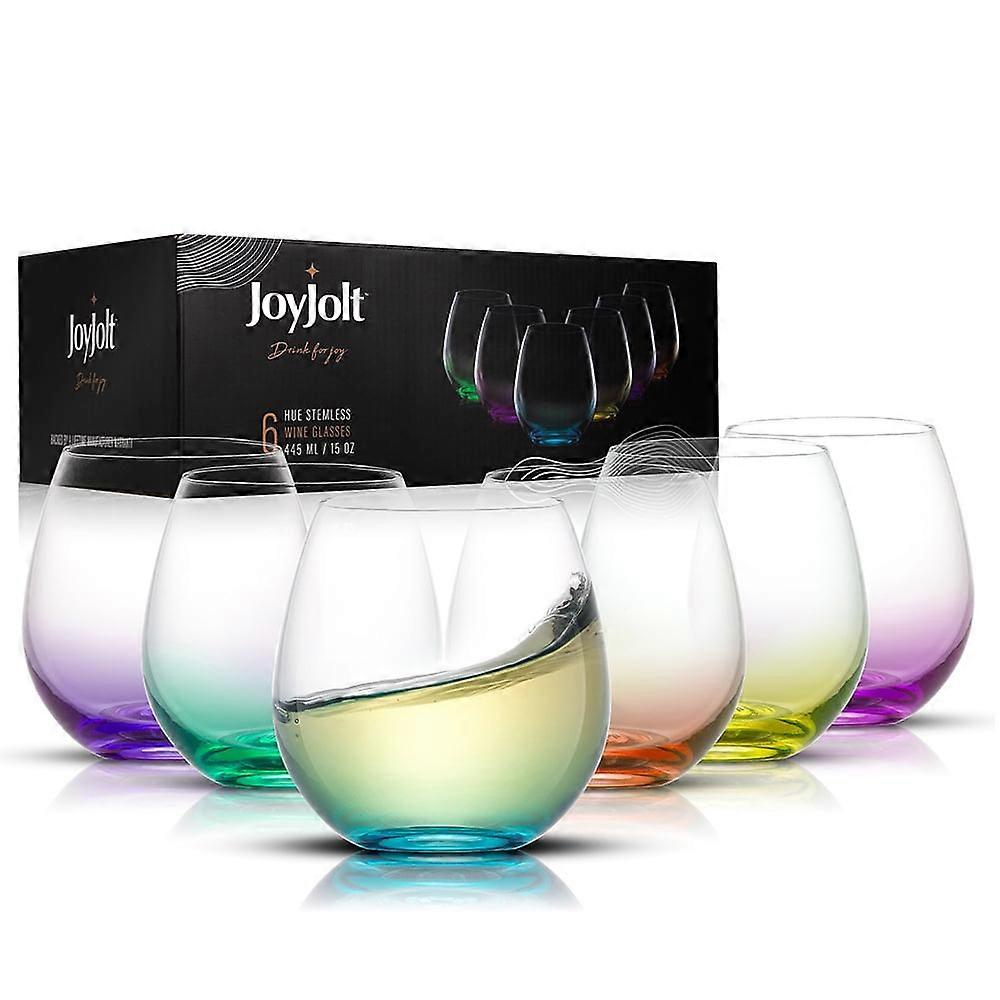 JoyJolt Hue Colored Stemless Wine Glass Set - Large 15 oz Glass Stemless Wine Glasses Set of 6