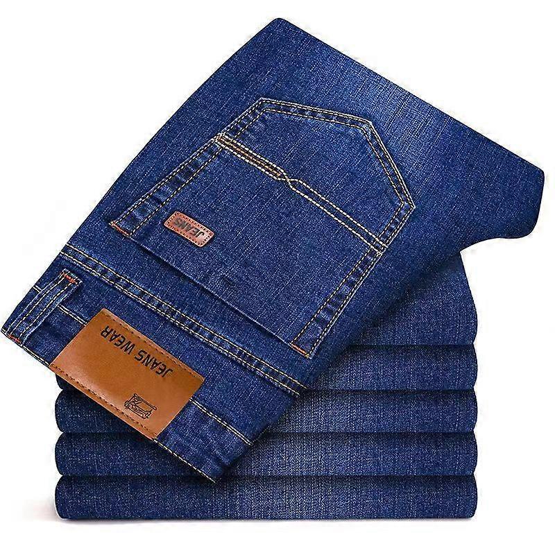 New Men Light Luxury Stretch Slim Fit Pants Comfortable Soft Business Fashion Straight Casual Denim Trousers Male Brand Clothing