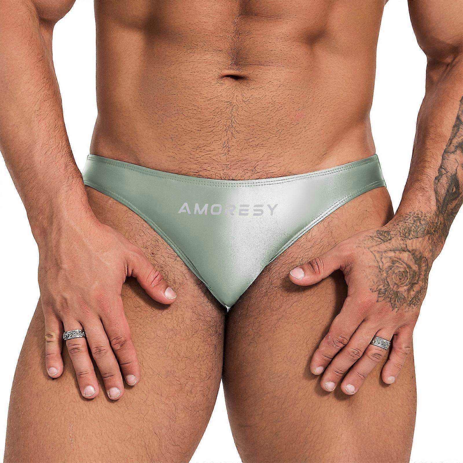 AMORESY Men Sexy Smooth Underwear Low Waist Stretch Soft Briefs Swimming Trunks
