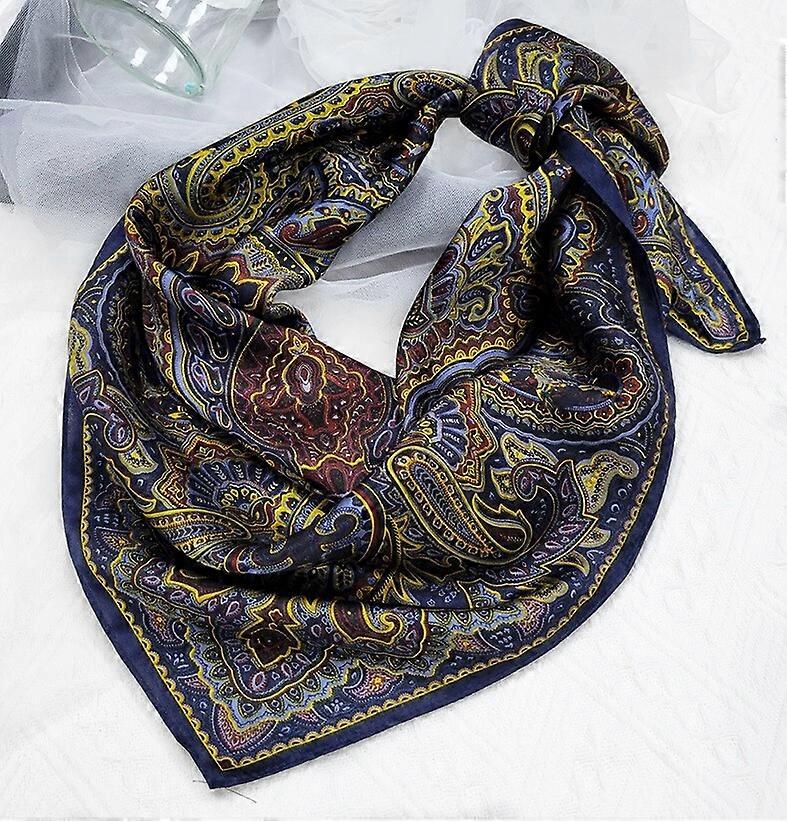 100 Silk Paisley Scarf Vintage Men Square Neckerchief Blue Cravat For Suit Shirt