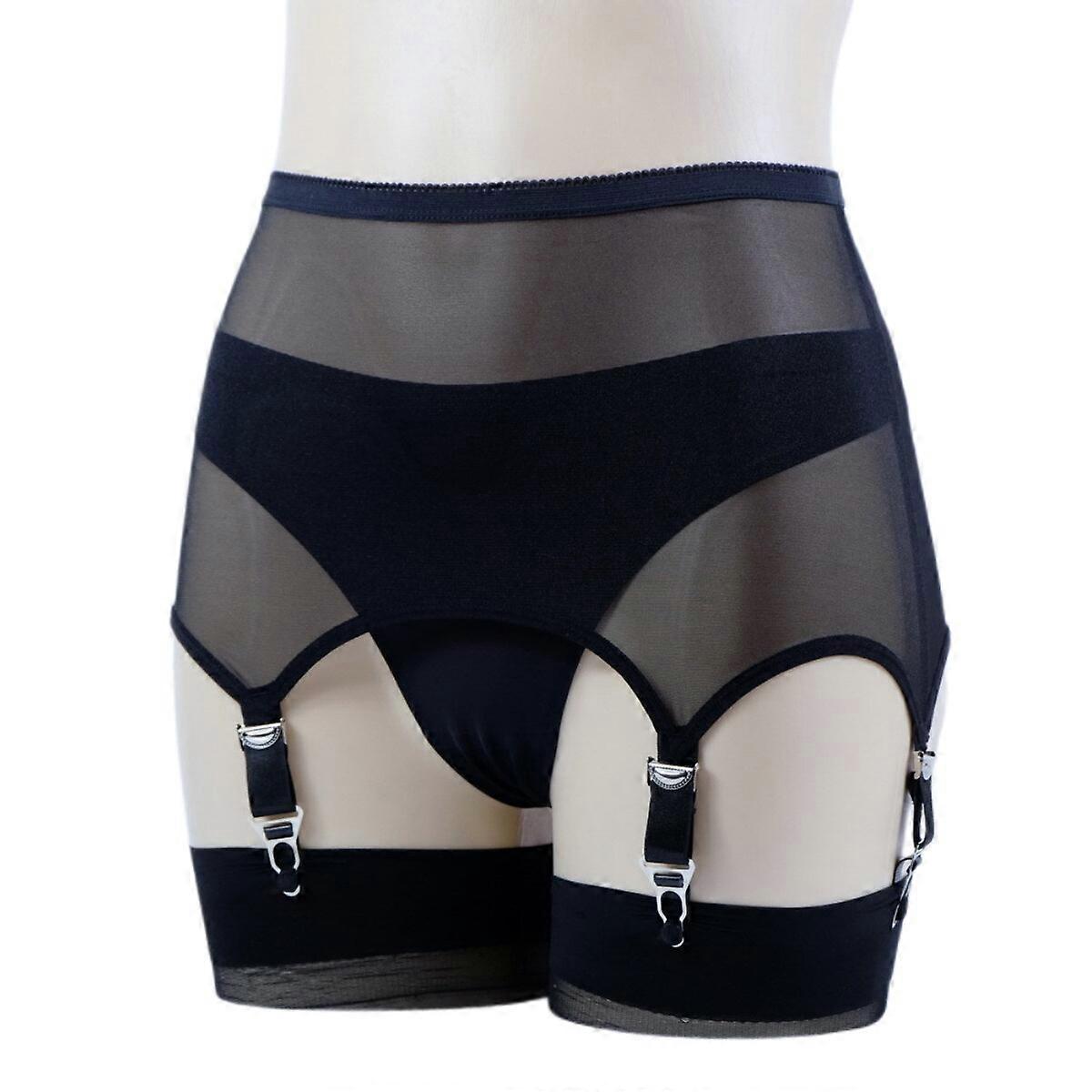Allacki Sheer Mesh Stretchy 6 Straps Garter Belts Open Bottom Girdle Underwear