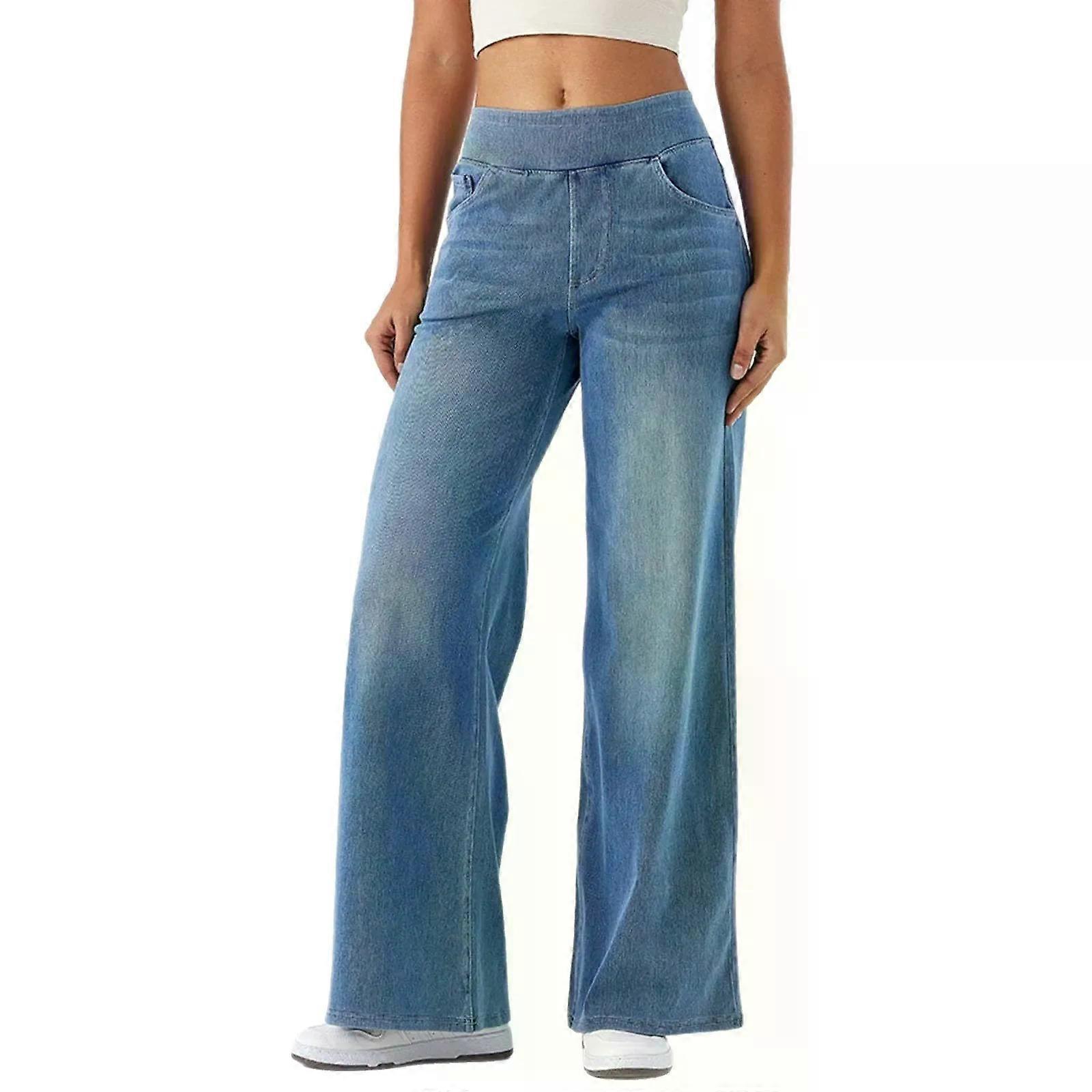 Women Jeans Denim Pant Wide Leg Long Pants Y2k Streetwear Elastic Waist Straight Trousers Elegant Mom Jeans Temperament Casual