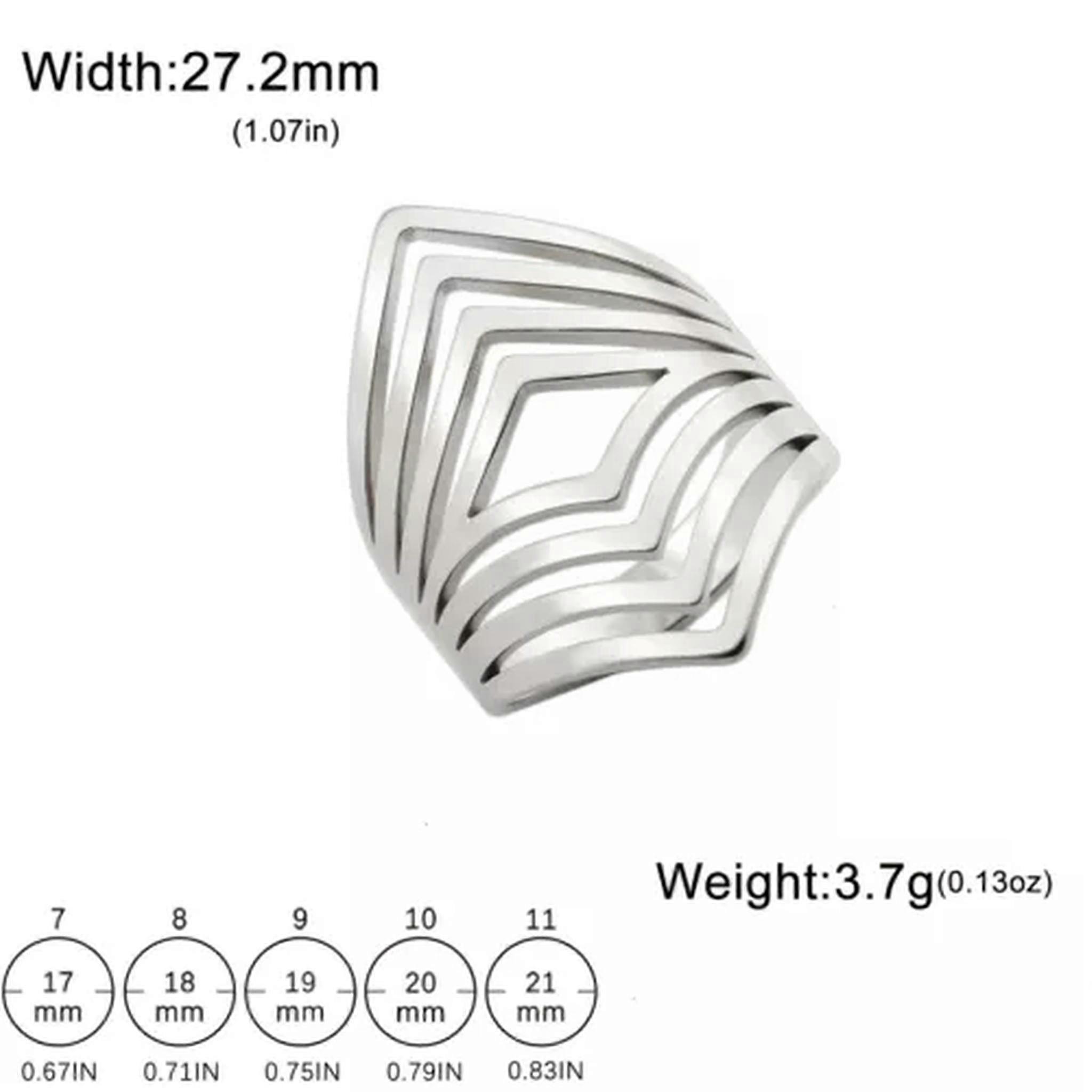 RSAMD Wide Vintage Geometric Stainless Steel Ring Hollow Finger Ring Aesthetic Jewelry-11-Steel Color