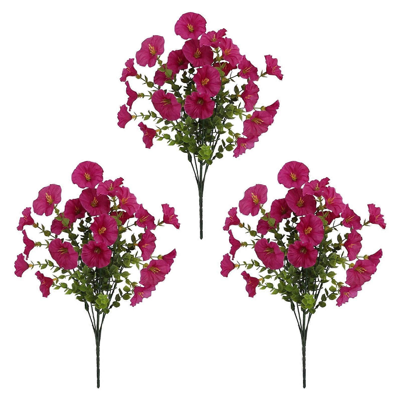 Summercome 3 PCS Faux Silk Morning Glory Plants, UV Resistant Fake Flowers for Outdoor, Porch, Patio, Balcony Decor (Hot Pink)
