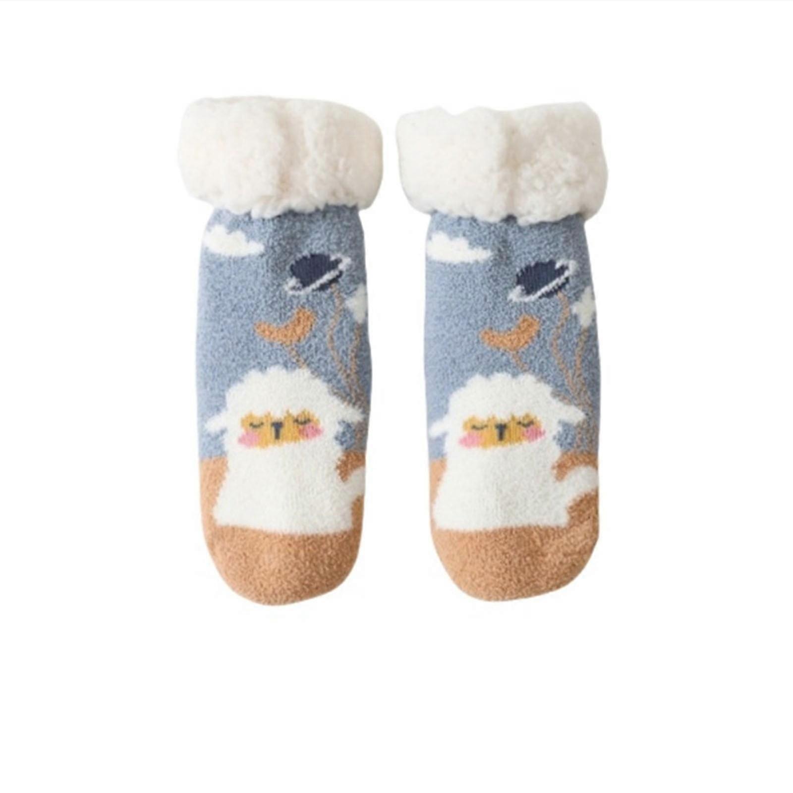 Krdevn Baby Socks - Rends Baby Slipper Socks Christmas Toddler Fuzzy Socks Warm Non Winter Socks - Socks for Baby Girl,Color:Blue,Size:0-2 Years
