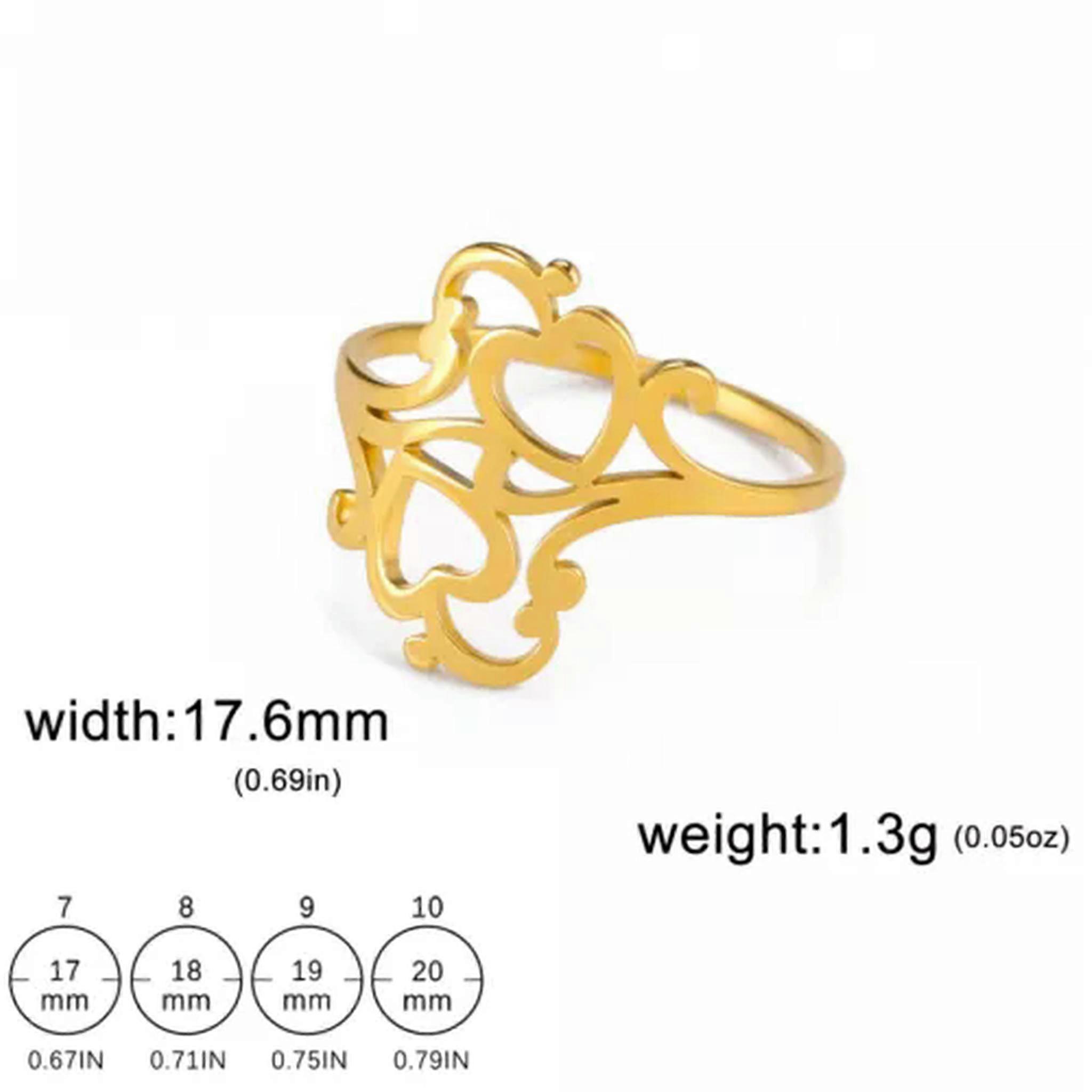 RSAMD Double Hearts Filigree Ring Women Stainless Steel Gold Color Finger Ring Jewelry-10-Gold Welcome to our jewelry emporium that's brimming with dazzling options for every style seeker. For the lovely ladies, we have an array of enchanting pieces. From the dainty necklaces that delicately adorn your collarbone to the elaborate rings that make a bold statement. There are bracelets that add a touch of grace and earrings that enhance your beauty. But don't think we've forgotten about the gentlemen! We have a selection of masculine and stylish accessories too. Sturdy rings for a touch of rugged charm, sleek bracelets that exude sophistication, and understated necklaces that add a hint of refinement. Our collection combines timeless classics with modern trends, crafted with precision and using top-quality materials. Whether you're looking for a piece to wear on a daily basis or for a special event, we've got you covered. So, step into our world of jewelry and discover that perfect piece that reflects your individuality, no matter your gender! Suitable for Gifting Fit for Every Occasion 100% New and of High Quality Crafted from Professional-Quality Materials Easy to Pair and Wearable at All Times and Places