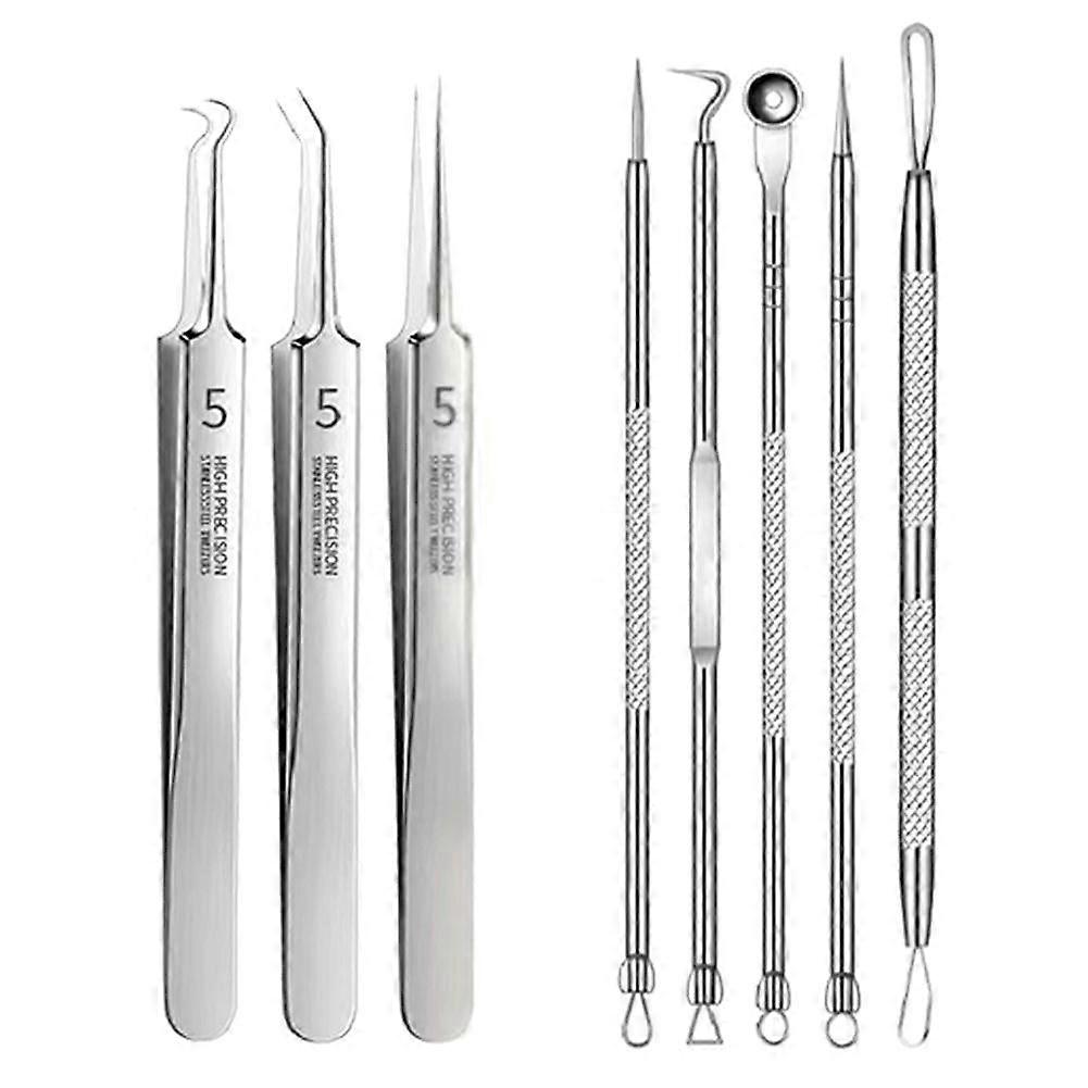 8-Piece Stainless Steel Acne Removal Kit with Blackhead Needle - Regular Version