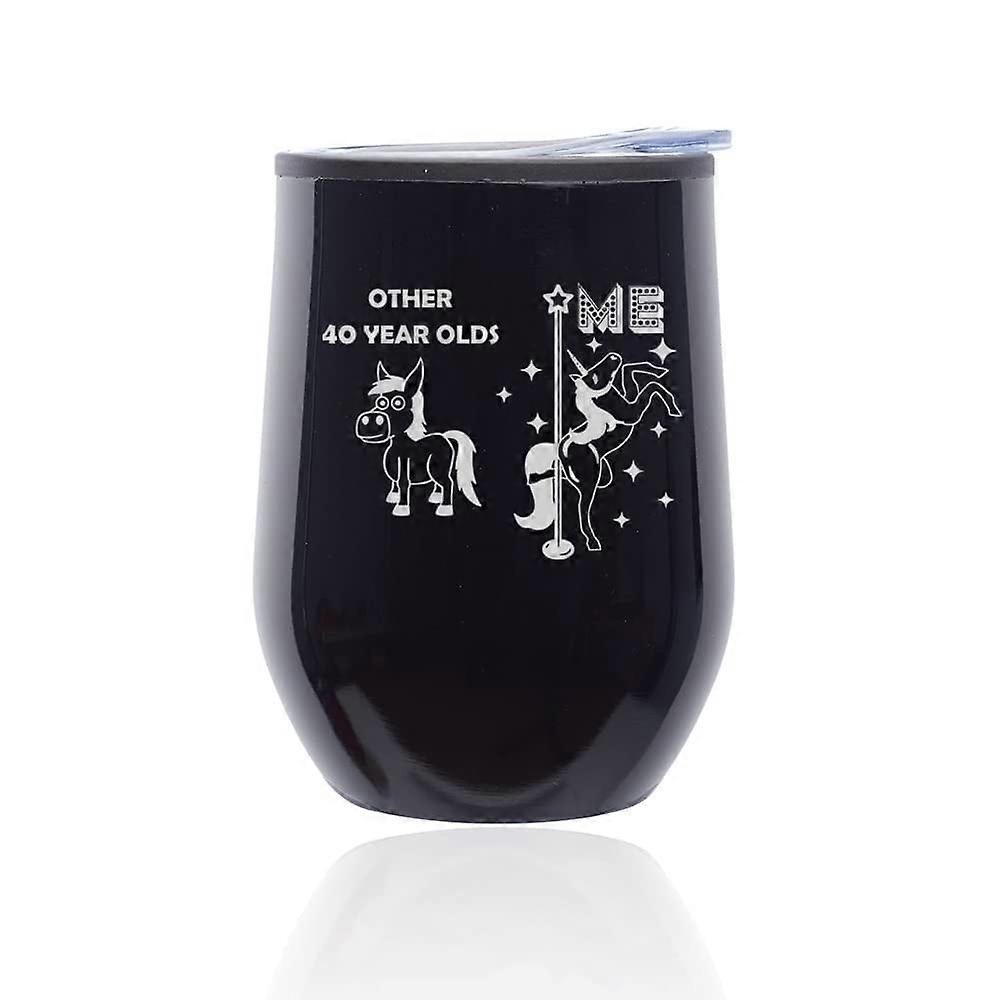 40 Year Old Superstar Unicorn 40th Birthday Stemless Wine Tumbler Coffee Travel Mug with Lid (Midnight Black)