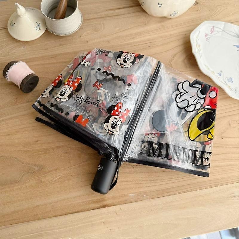 Disney Mickey Mouse Minnie Anime Cartoon Cute Transparent Umbrella Creative Kawaii Girl Heart Fully Automatic Folding Umbrella