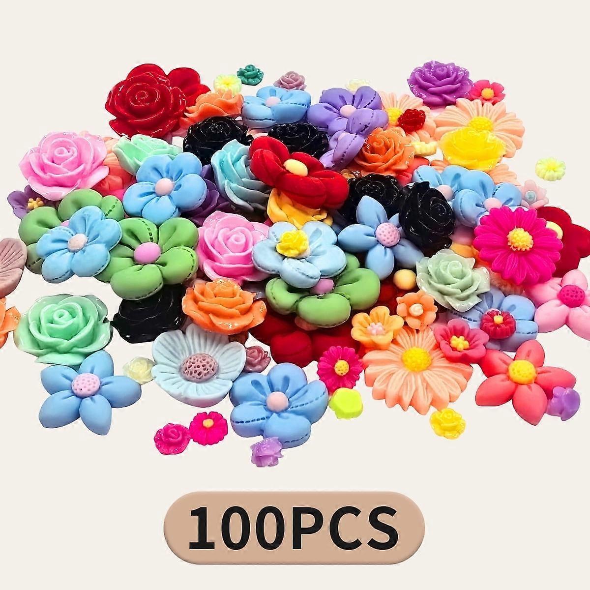 Kabuer Mini Mixed Color Flower Resin Nail Charms Daisy Beads 100PCS - DIY Crafts Scrapbooking Hair Clips and Embellishments Decor