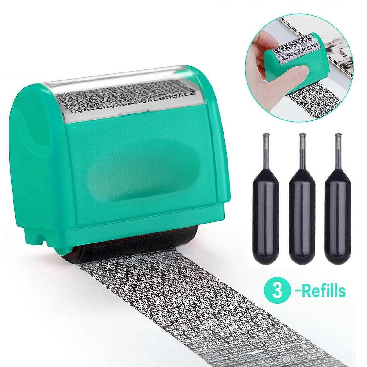Identity Theft Protection Roller Stamps Refillable Guard Your ID Privacy Confidential Data Wide Security Stamp Roller with 3 Ink Refills, Green