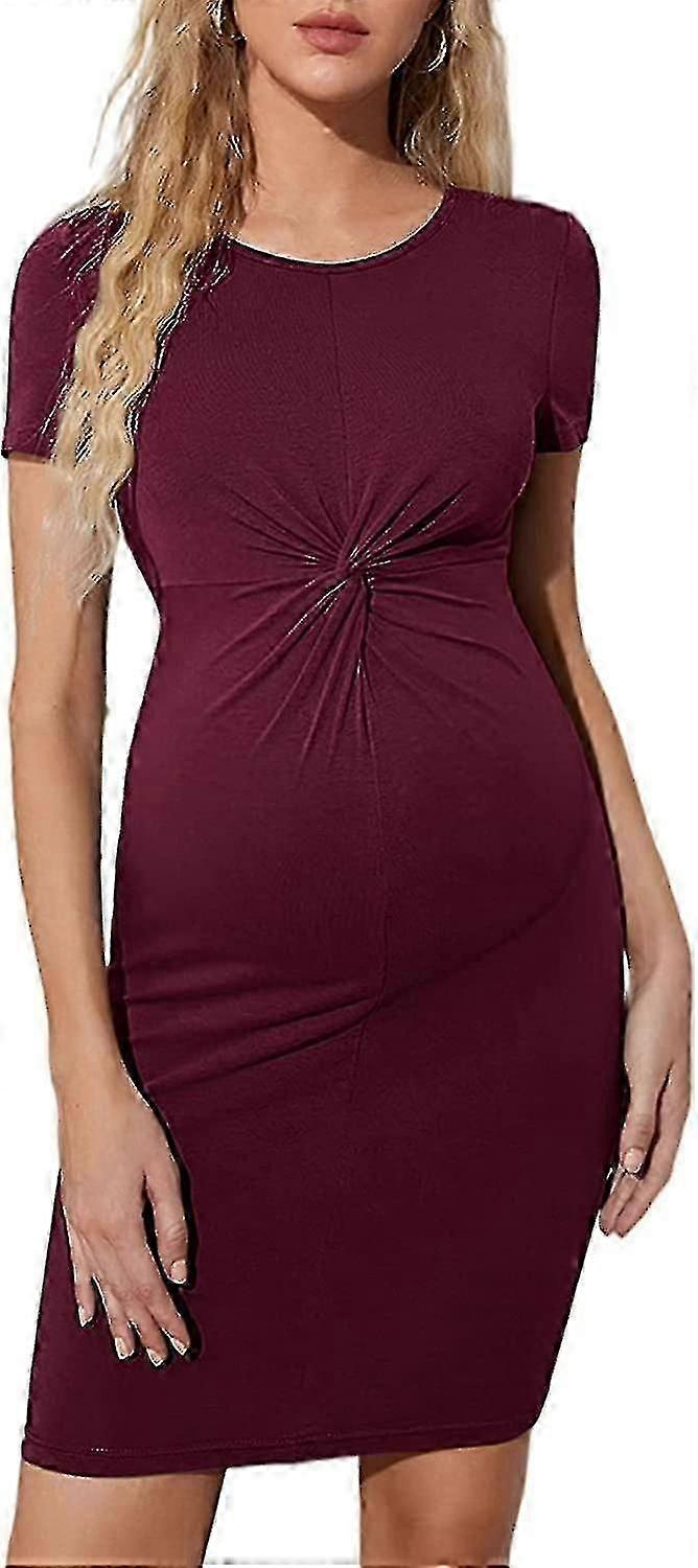 Women's Twist Front Short Sleeve Maternity Dress Crewneck Short Tee Shirt Dress S-2xl
