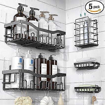 Adhesive Shower Caddy, 5 Pack Rustproof Stainless Steel Bath Organizers With Large Capacity, No Drilling Shelves for Bathroom St