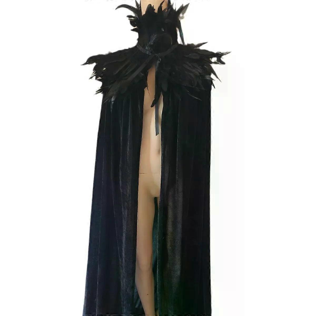 Cosplay Black Evil Witch Cloak Steampunk costumes Feather Collar Light Gauze Cape Length 180cm Halloween carnival party Adults