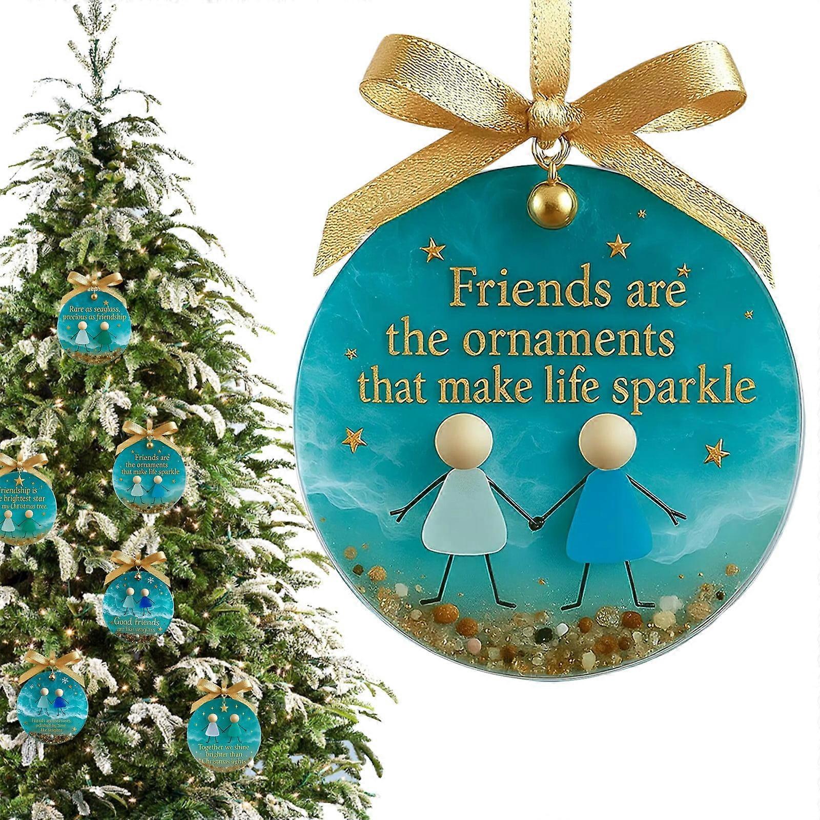 Friendship Sea Glass Christmas Ornament, Ocean-Inspired Decor for Friends, Sisters, Colleagues - "Friends Make Life Sparkle"