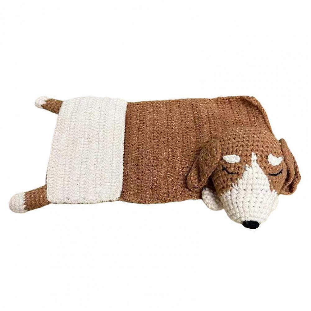 Sofa Storage Bag Soft Wool Dog Shape Hand Woven Wool Pillow With Built-in Cup Holder Winter Christmas Decor
