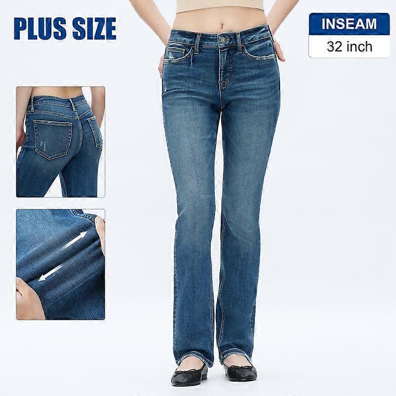 Plus Size Mid Waist Stretch Straight Leg Jeans �C Comfortable Denim Streetwear for Women with Pockets