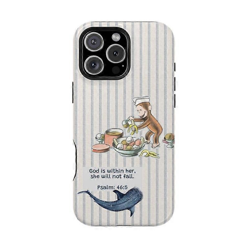 Faith-Inspired Curious George Phone Case Vintage Pastel Stripes with Bible Verses Cute Christian Monkey Cover for iPhone Samsung Party Theme