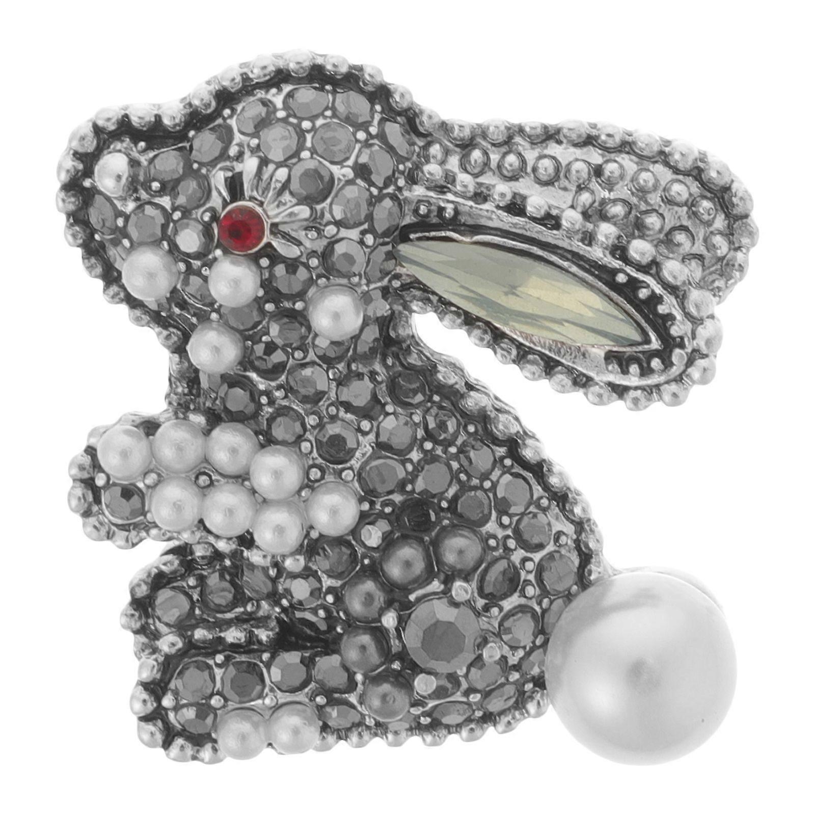 Adorable Rabbit Brooch Creative Pearl Crystal Rabbit Brooch Alloy Brooch Clip Jewelry Clothes Accessory (Style A